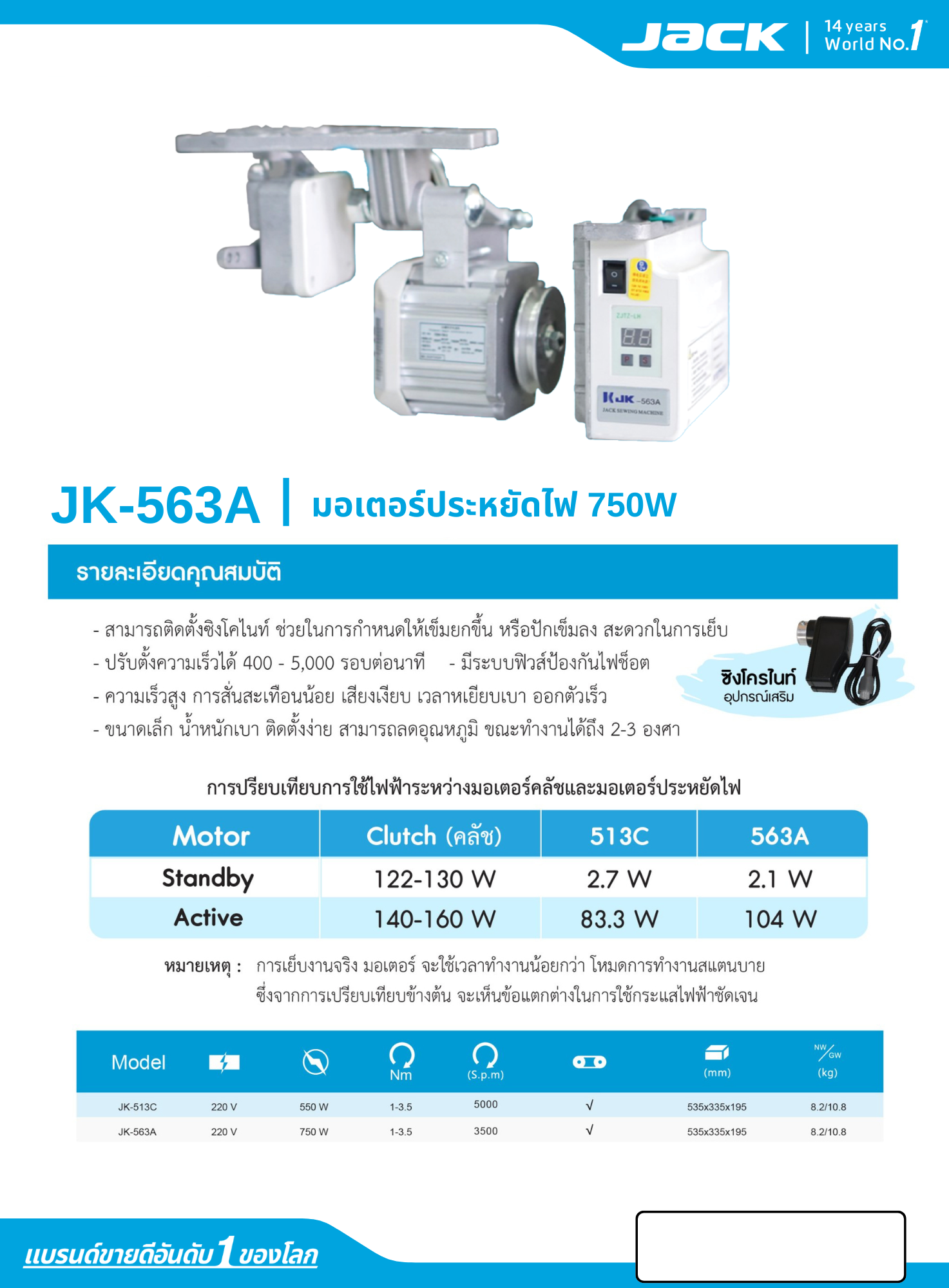 มอเตอร์ประหยัดไฟ 750W JACK รุ่น JK-563A