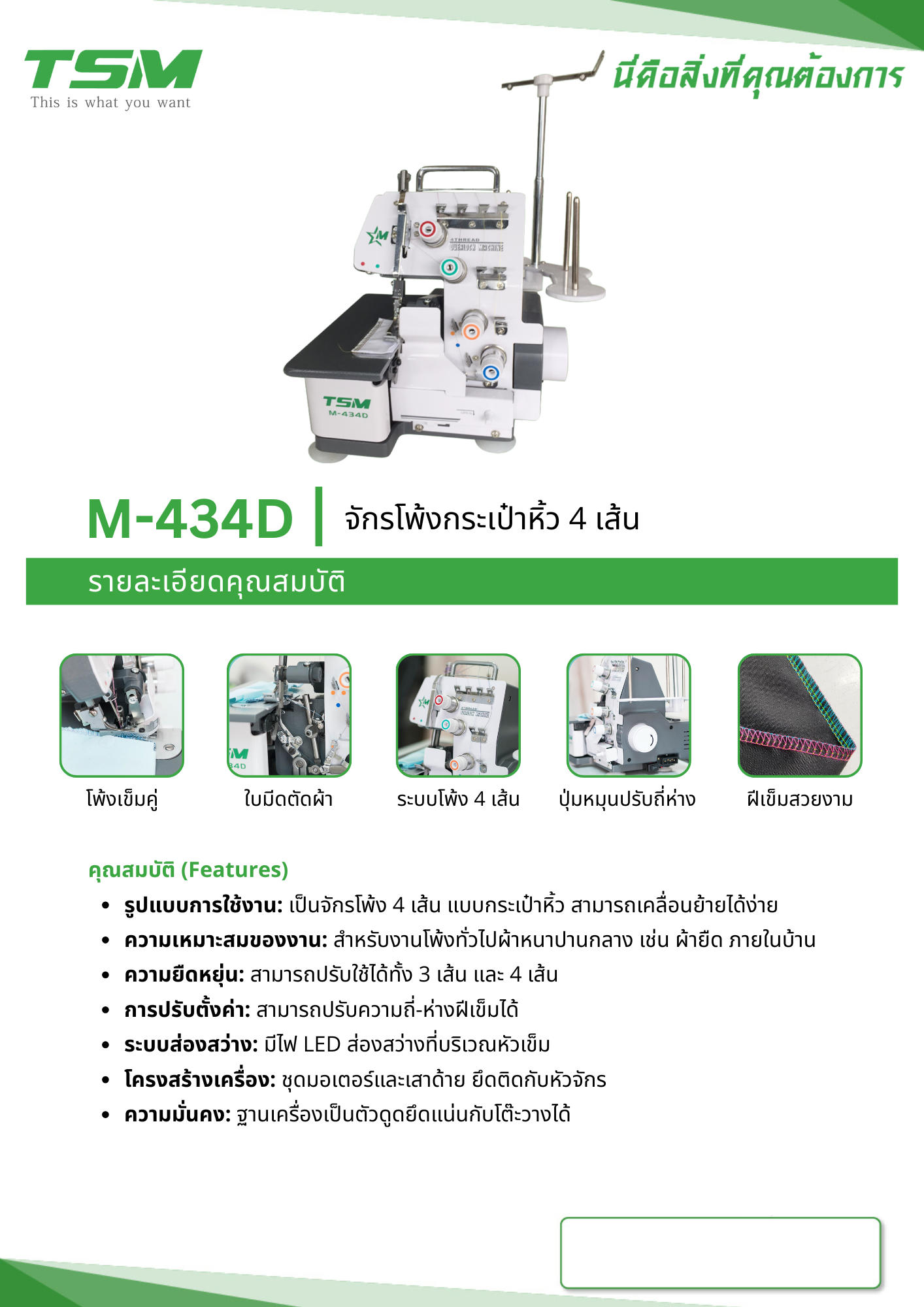 จักรโพ้งกระเป๋าหิ้ว 4 เส้น TSM รุ่น M-434D