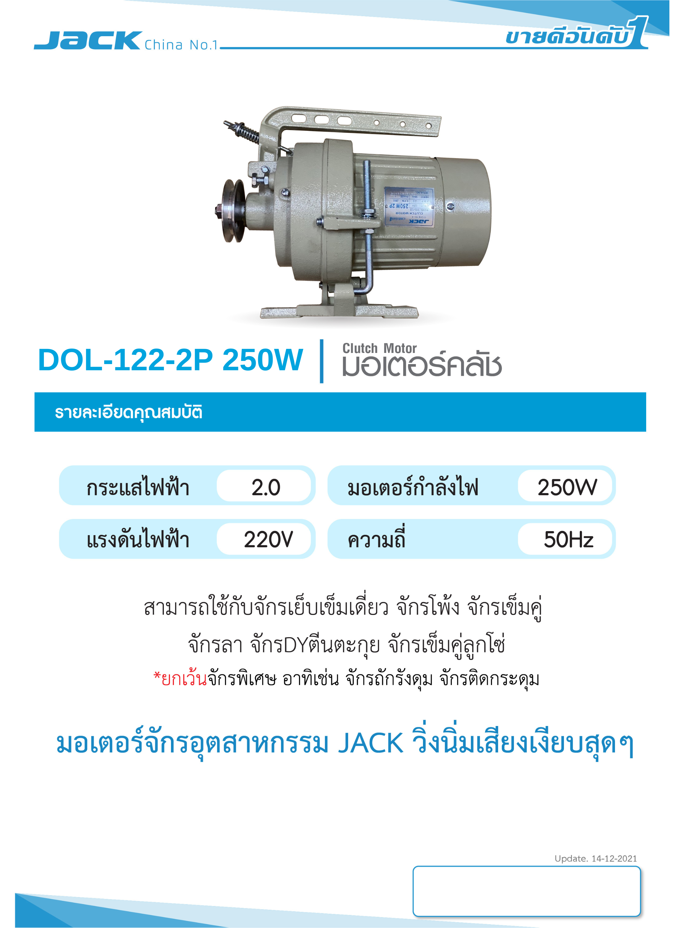 มอเตอร์คลัช JACK รุ่น DOL-122 2P 250W 220V