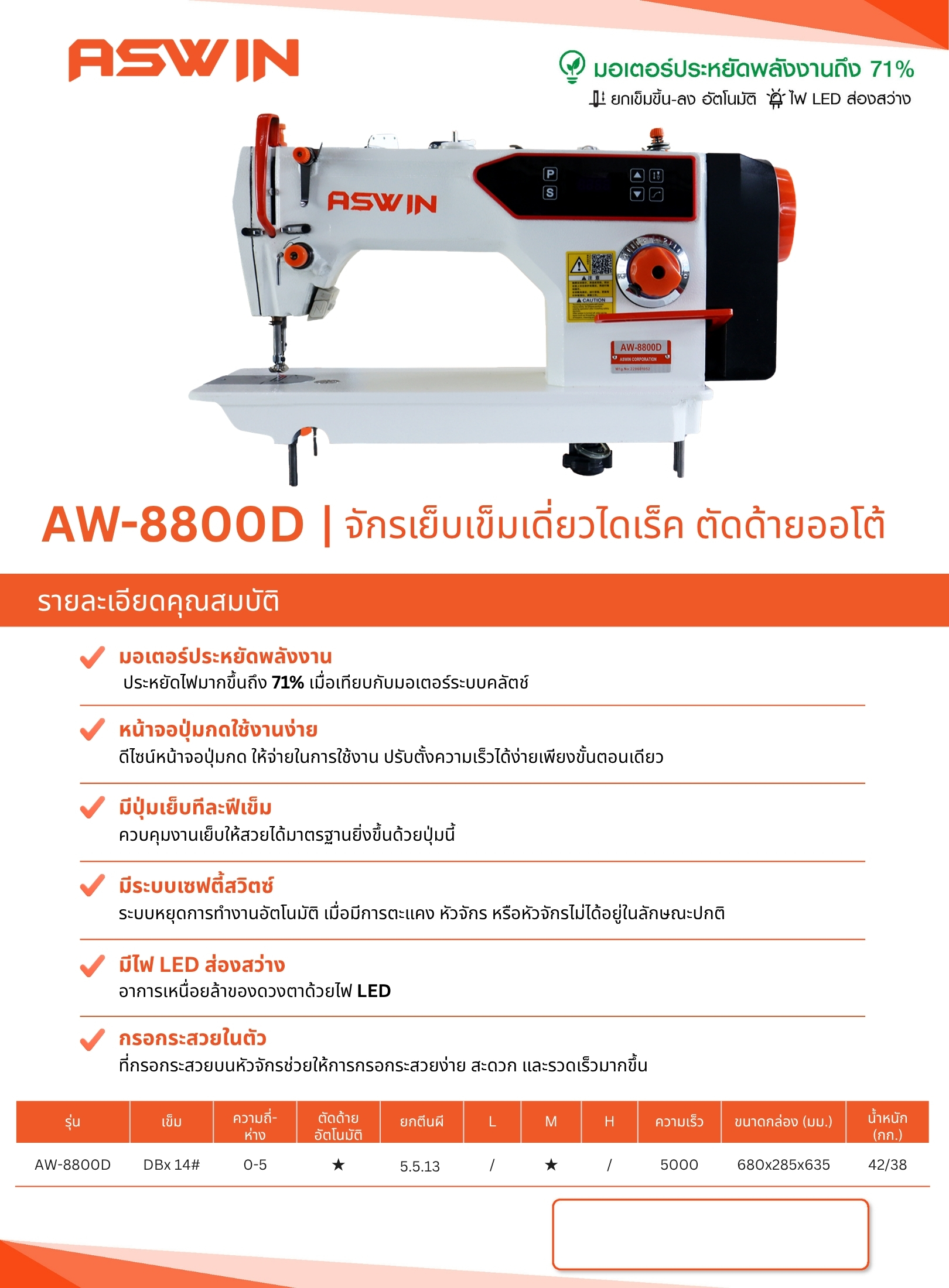 หมวดหมู่ : จักรเย็บผ้า ,  จักรอุตสาหกรรม ,  จักรเย็บเข็มเดี่ยว ,  ไดเร็ค ,