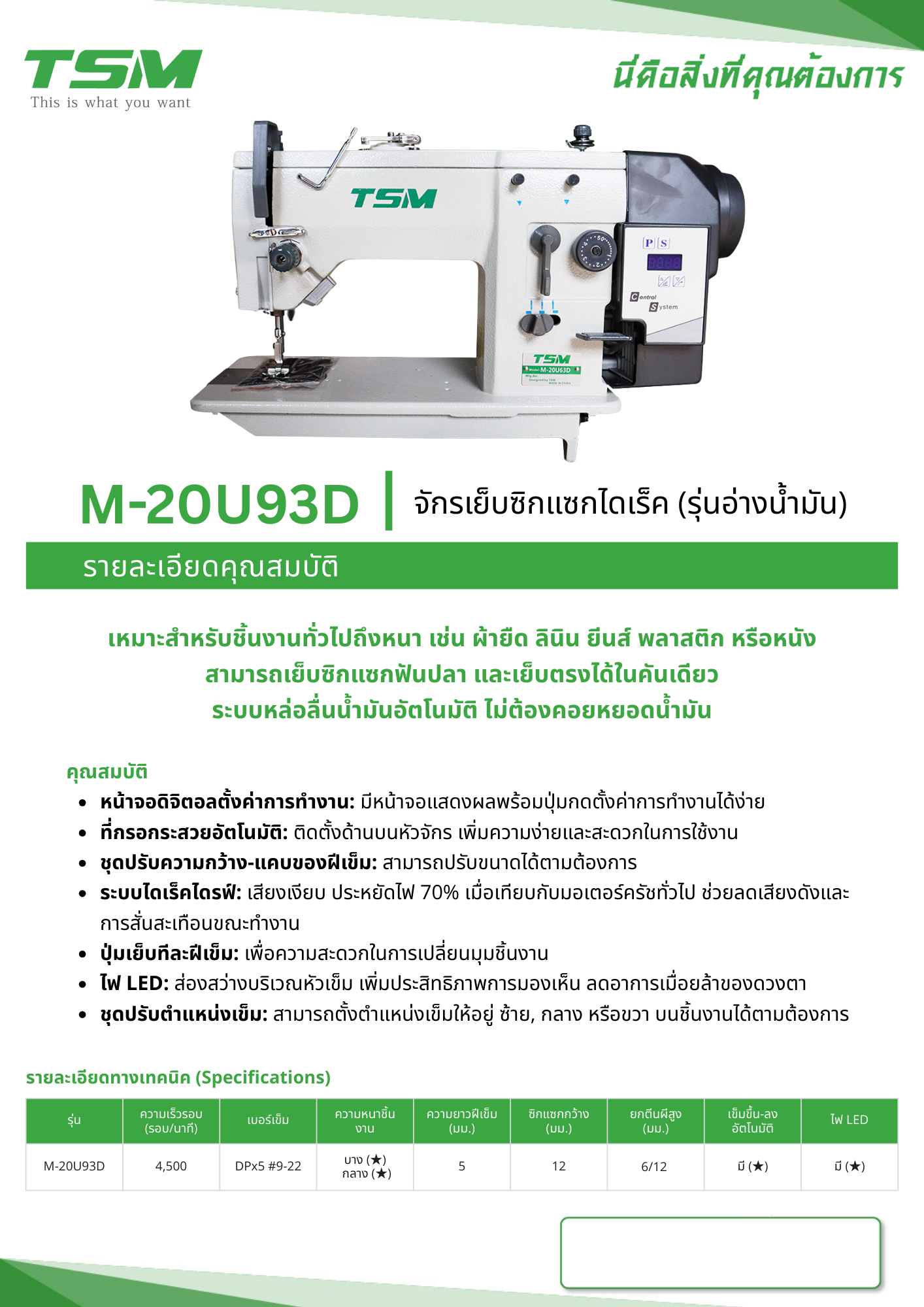 จักรเย็บซิกแซกไดเร็ค (รุ่นอ่าง) TSM รุ่น M-20U93D