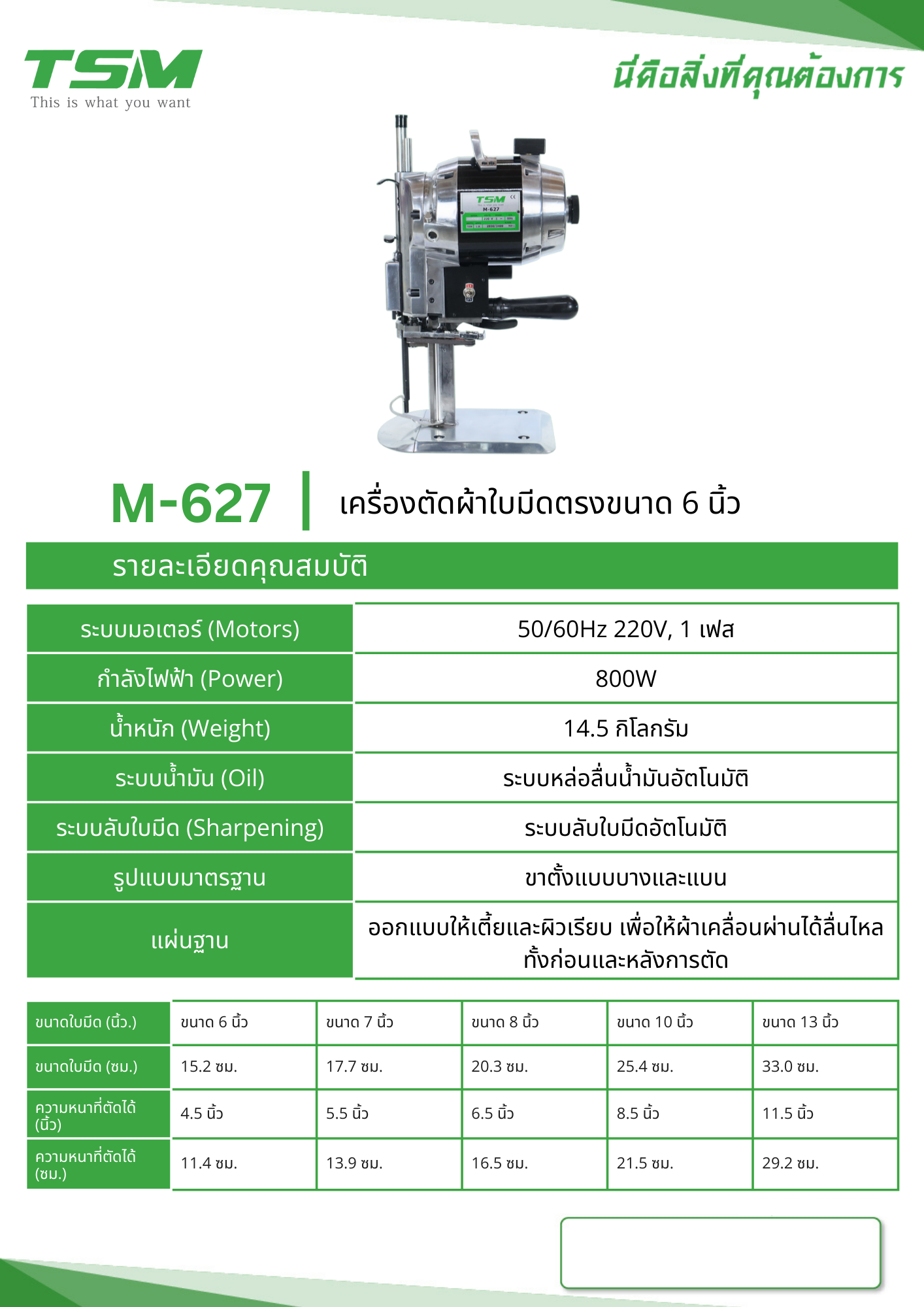 เครื่องตัดผ้า 6 นิ้ว 750W TSM รุ่น M-627
