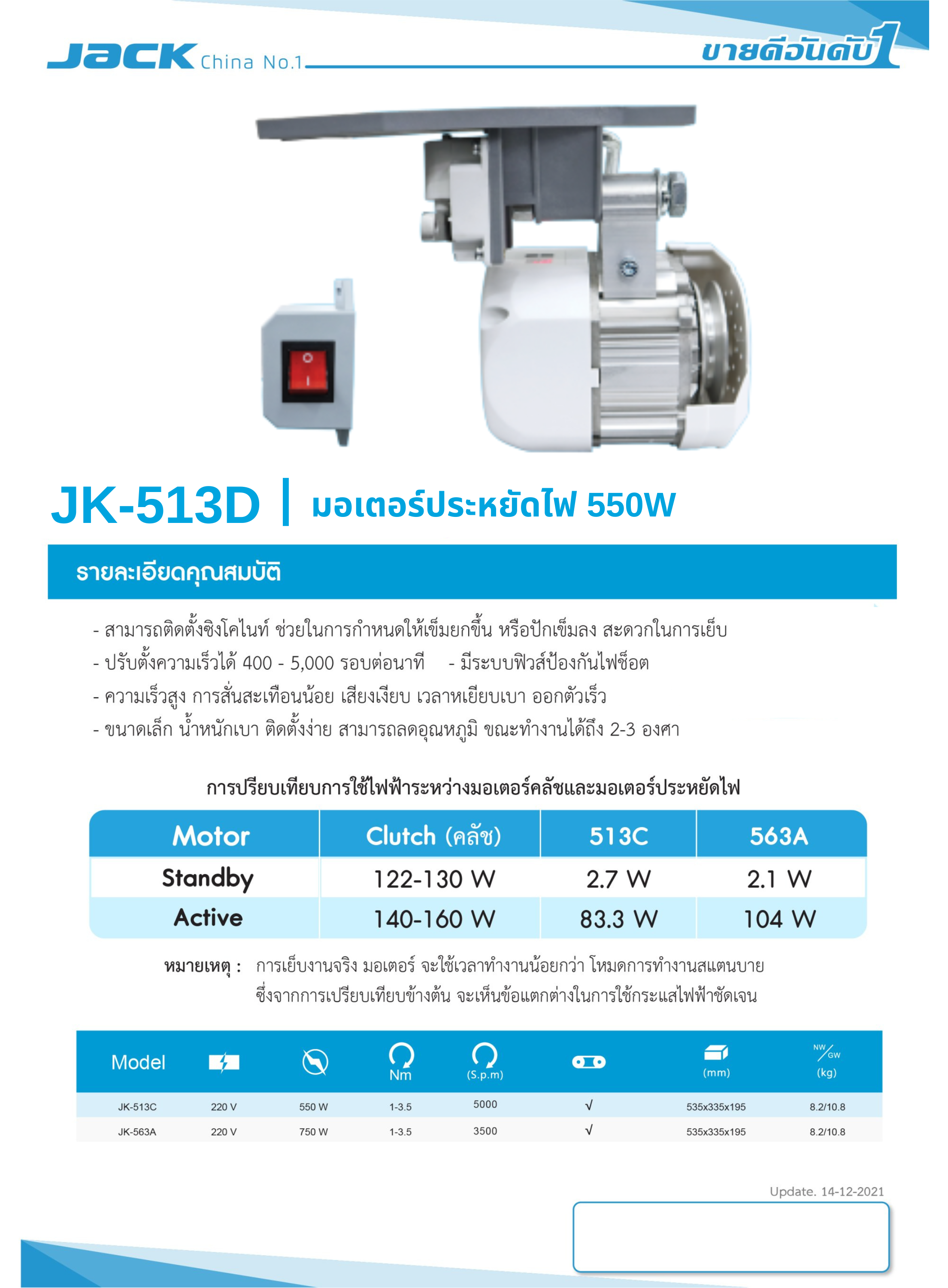 มอเตอร์ประหยัดไฟ รุ่นประหยัด 550W JACK รุ่น JK-513D