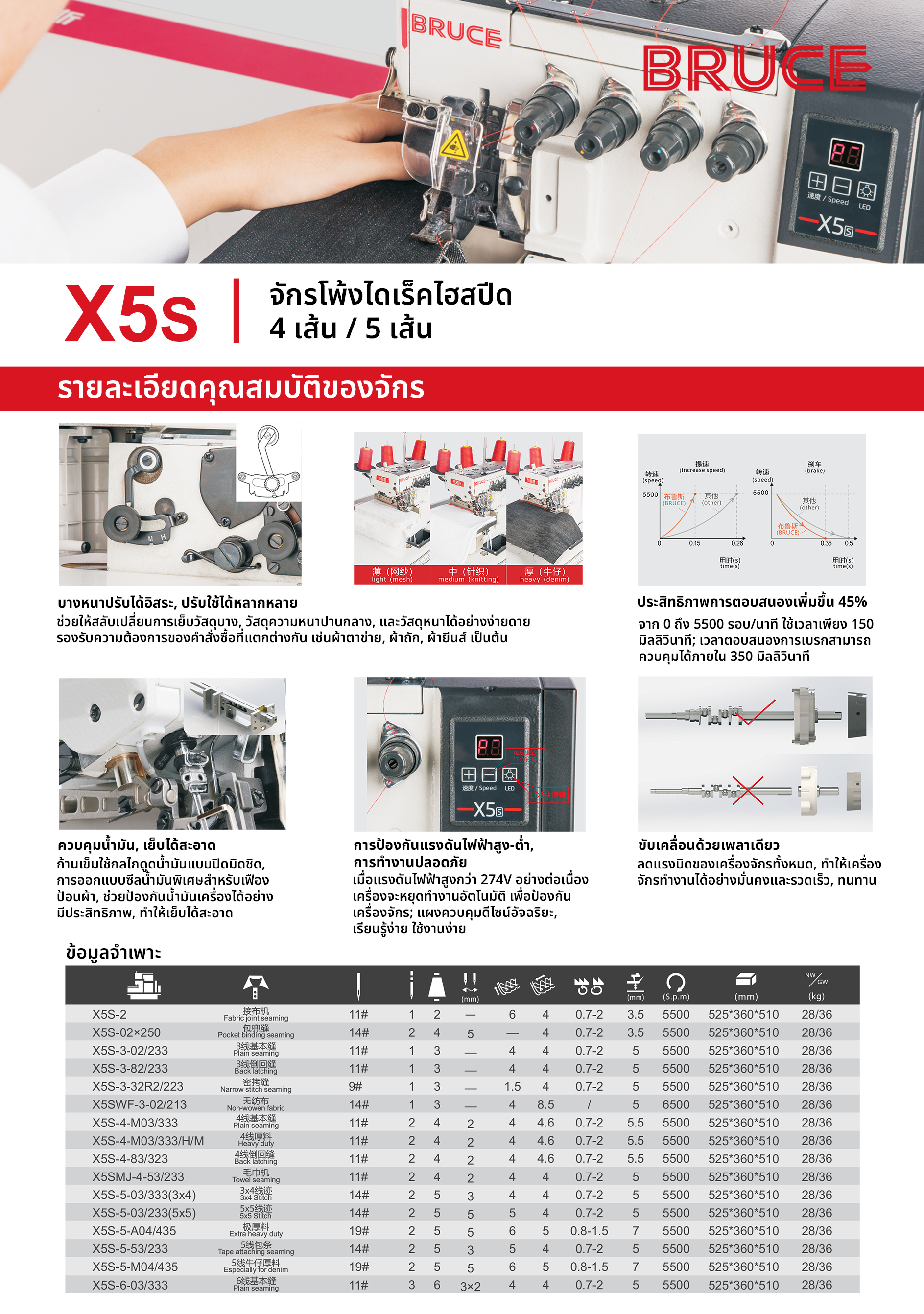 จักรโพ้งไฮสปีดไดเร็ค 4 เส้น BRUCE รุ่น X5S-4-M03/33