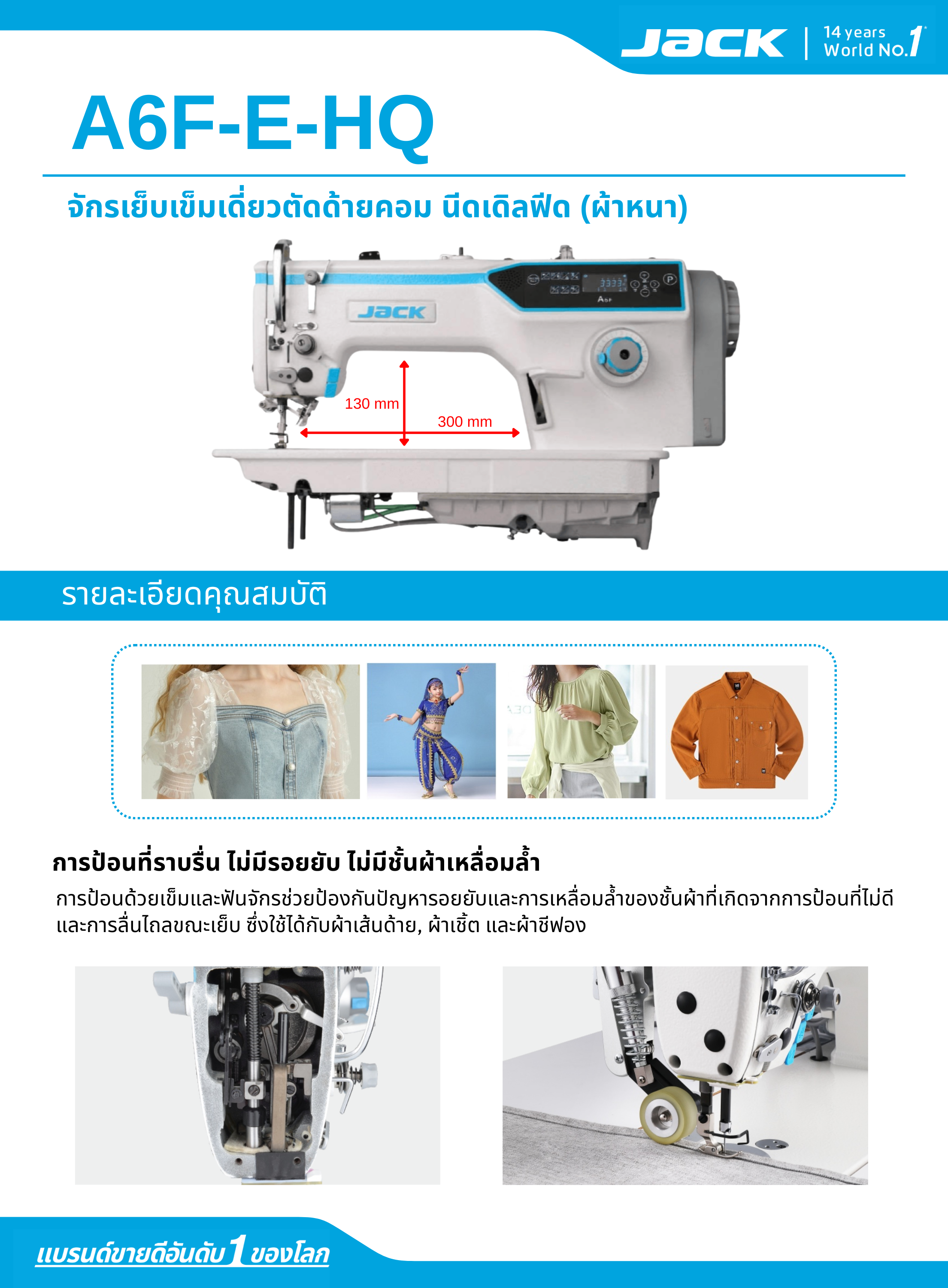 จักรเย็บเข็มเดี่ยวตัดด้ายคอม นีดเดิลฟีด (ผ้าหนา) JACK รุ่น A6F-E-HQ