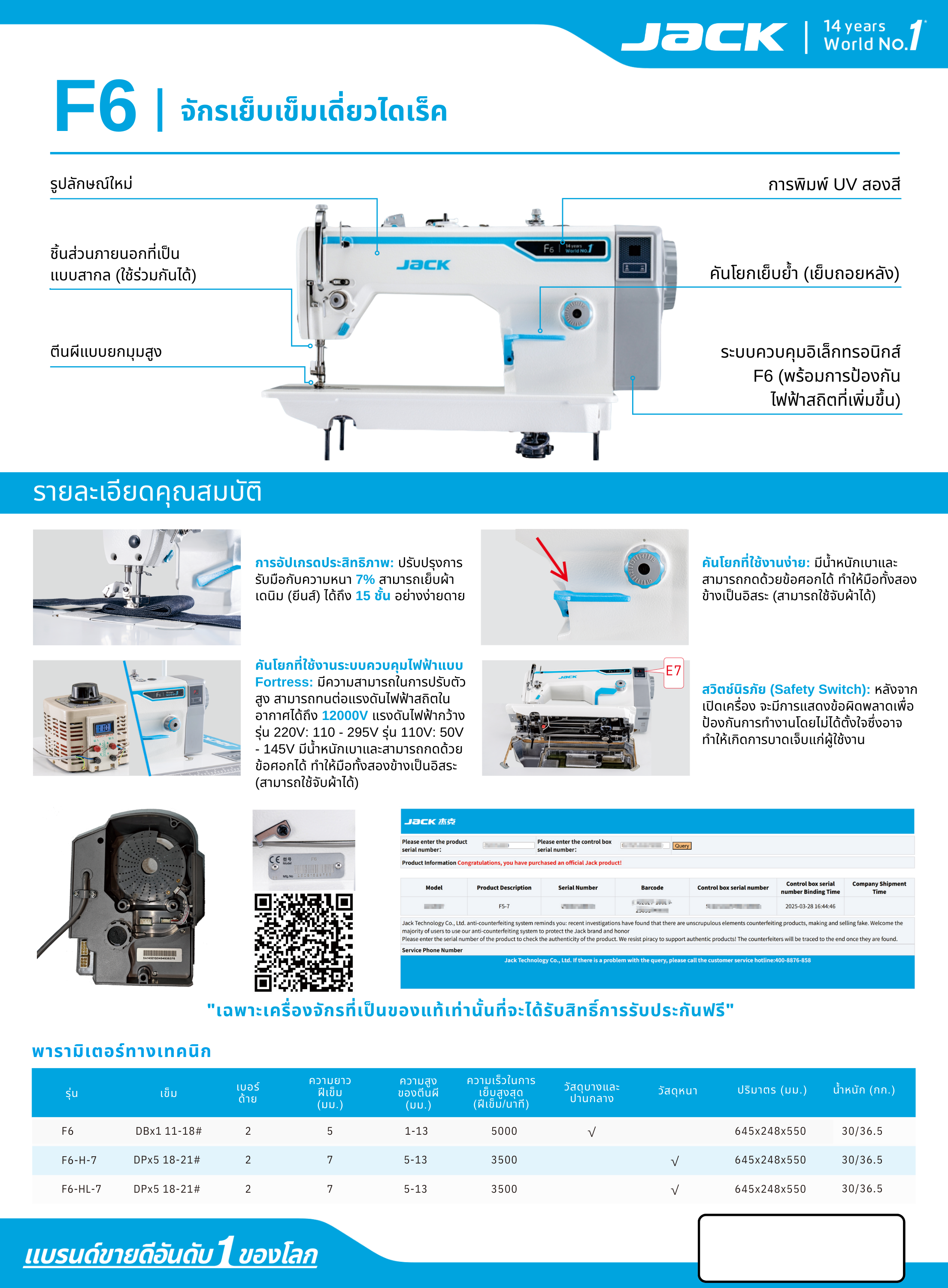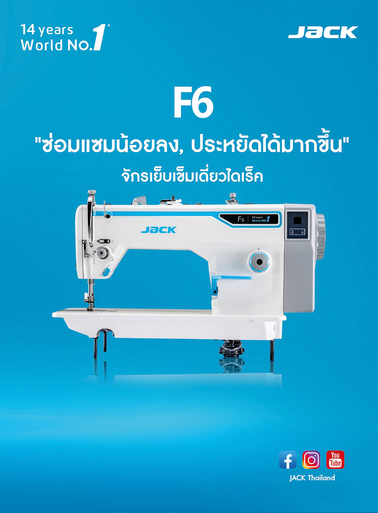จักรเย็บเข็มเดี่ยวไดเร็ค JACK รุ่น F6