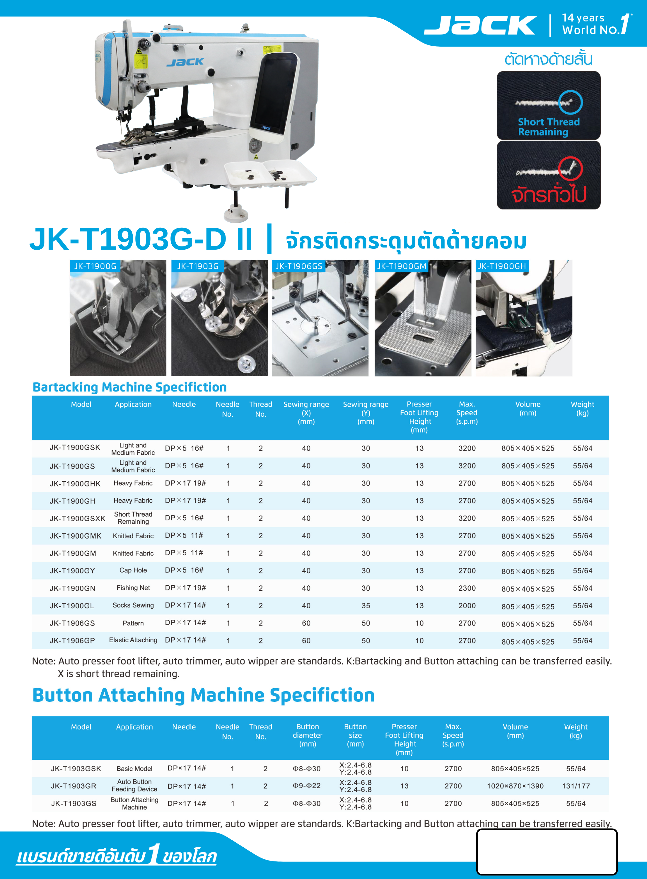 จักรติดกระดุมตัดด้ายคอม JACK รุ่น JK-T1903G-D II