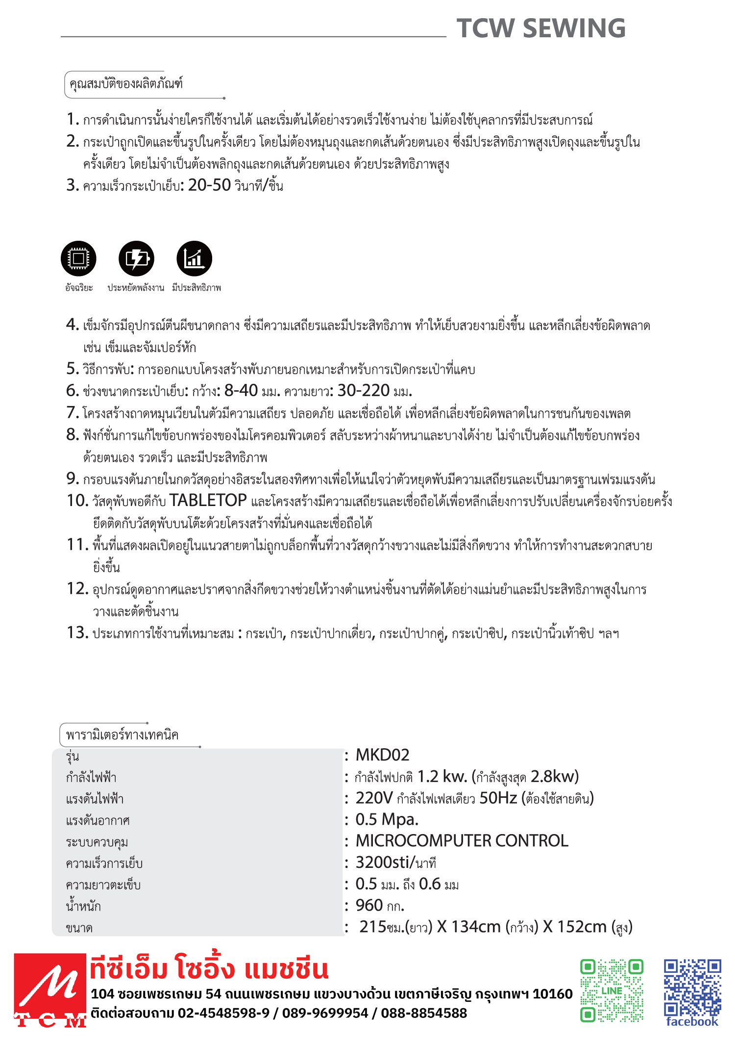 TCM Sewing ตัวแทนนำเข้าจักรเย็บผ้า ทุกชนิด แบรนด์ระดับโลก มากที่สุดในประเทศ