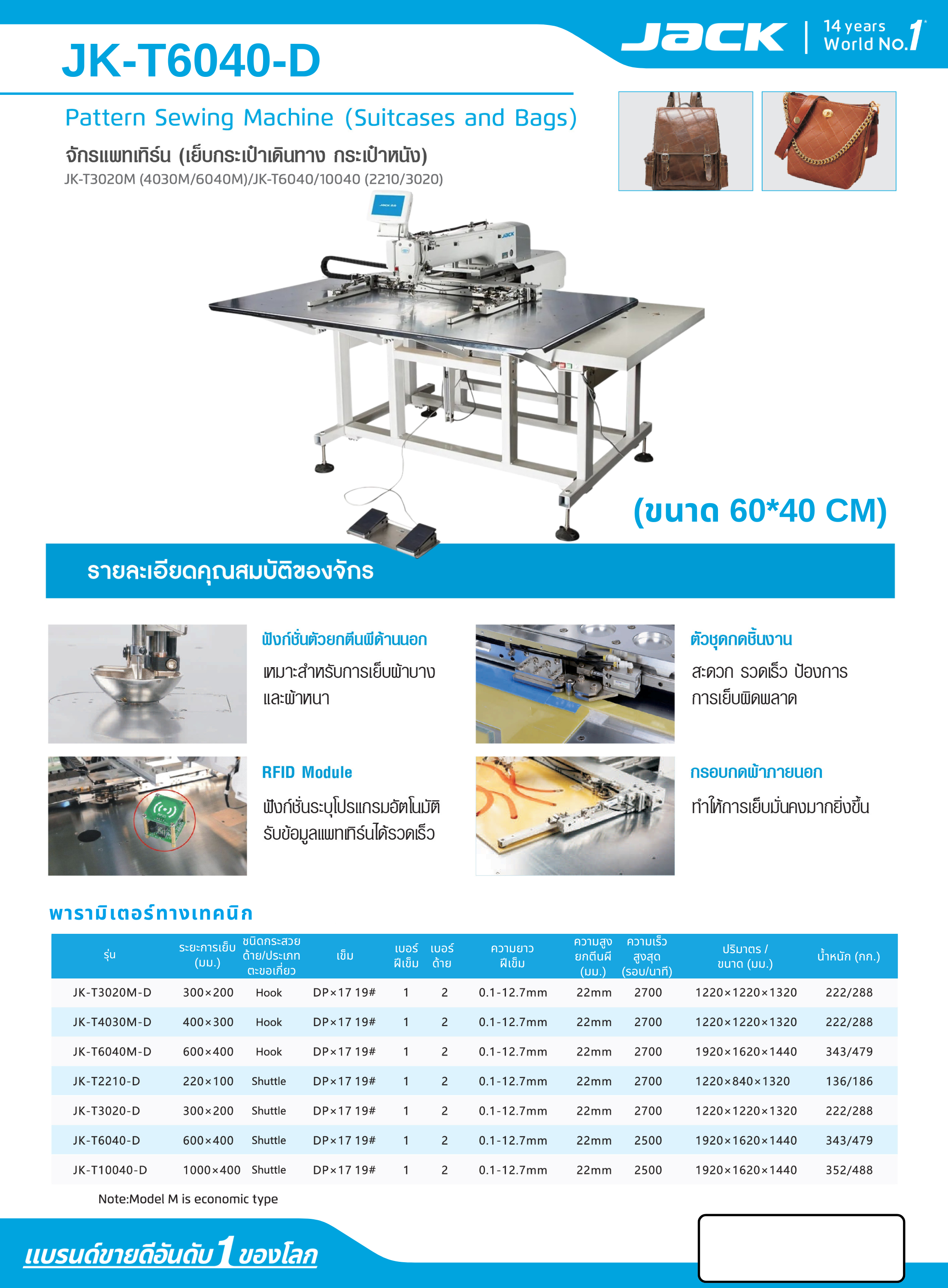 จักรแพทเทิร์นตัดด้ายคอม (ขนาด 60*40 CM) JACK รุ่น JK-T6040-D
