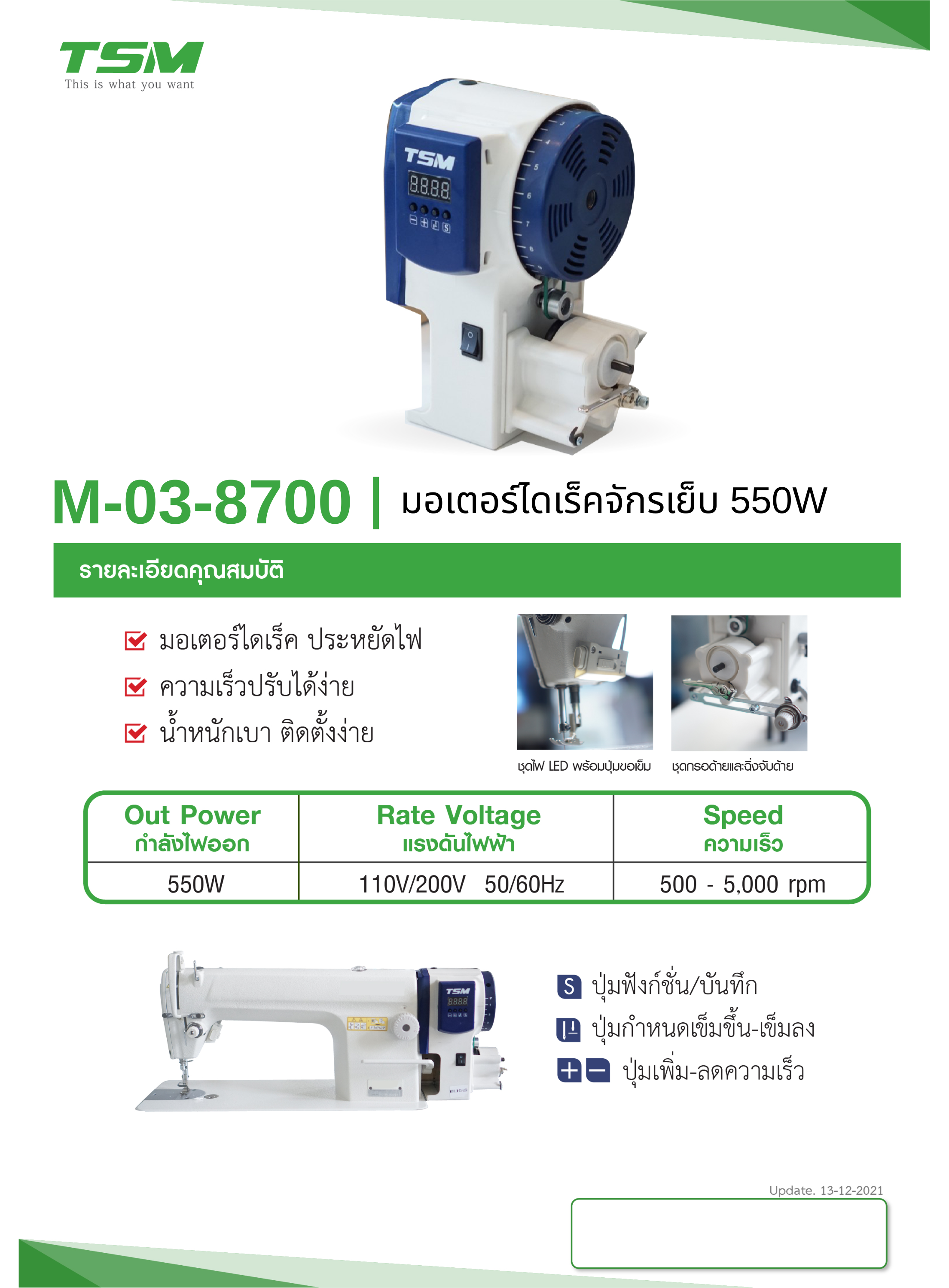 มอเตอร์ไดเร็คจักรเย็บเข็มเดี่ยว TSM รุ่น M-03-8700