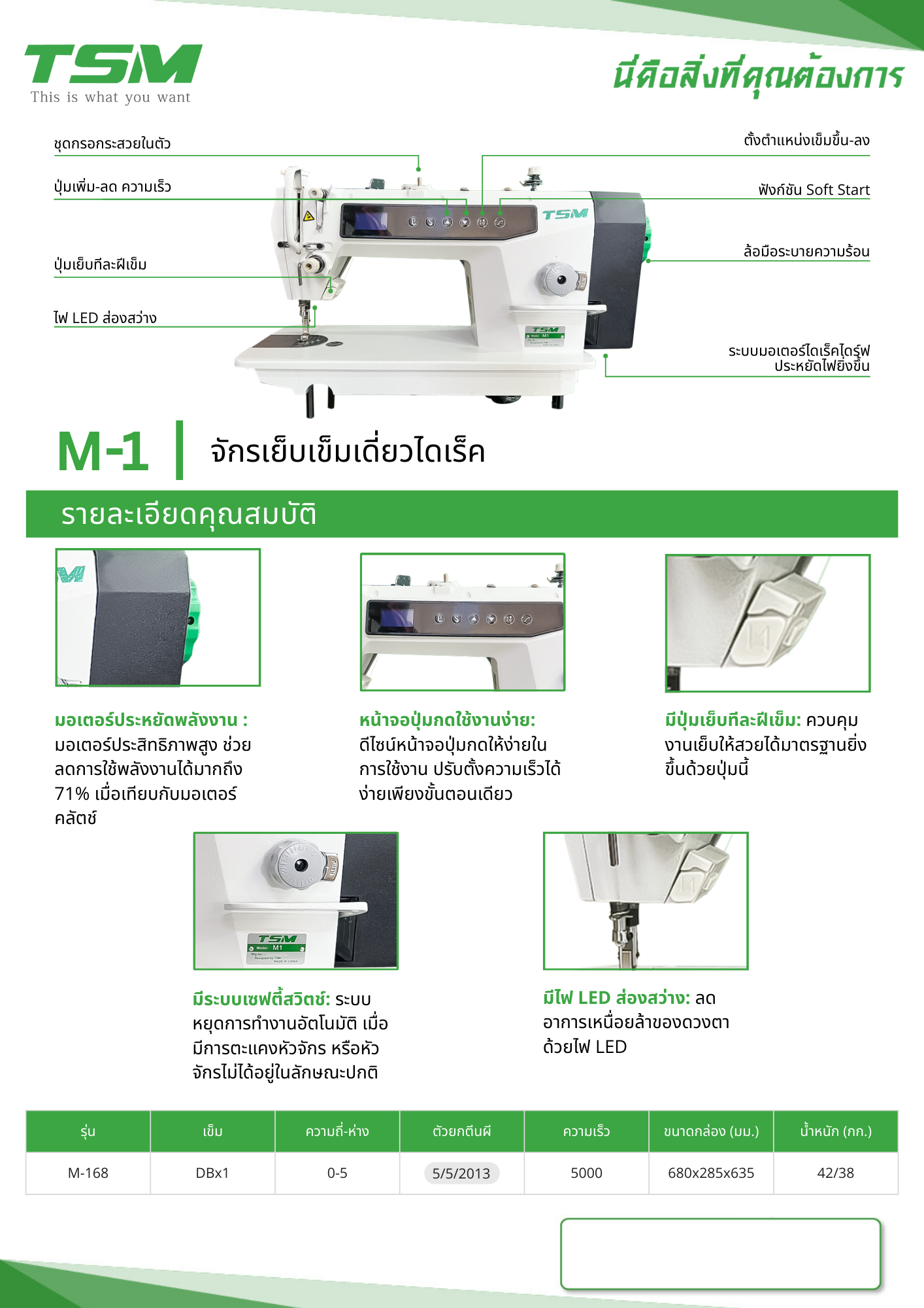 จักรเย็บเข็มเดี่ยวไดเร็ค TSM รุ่น M1